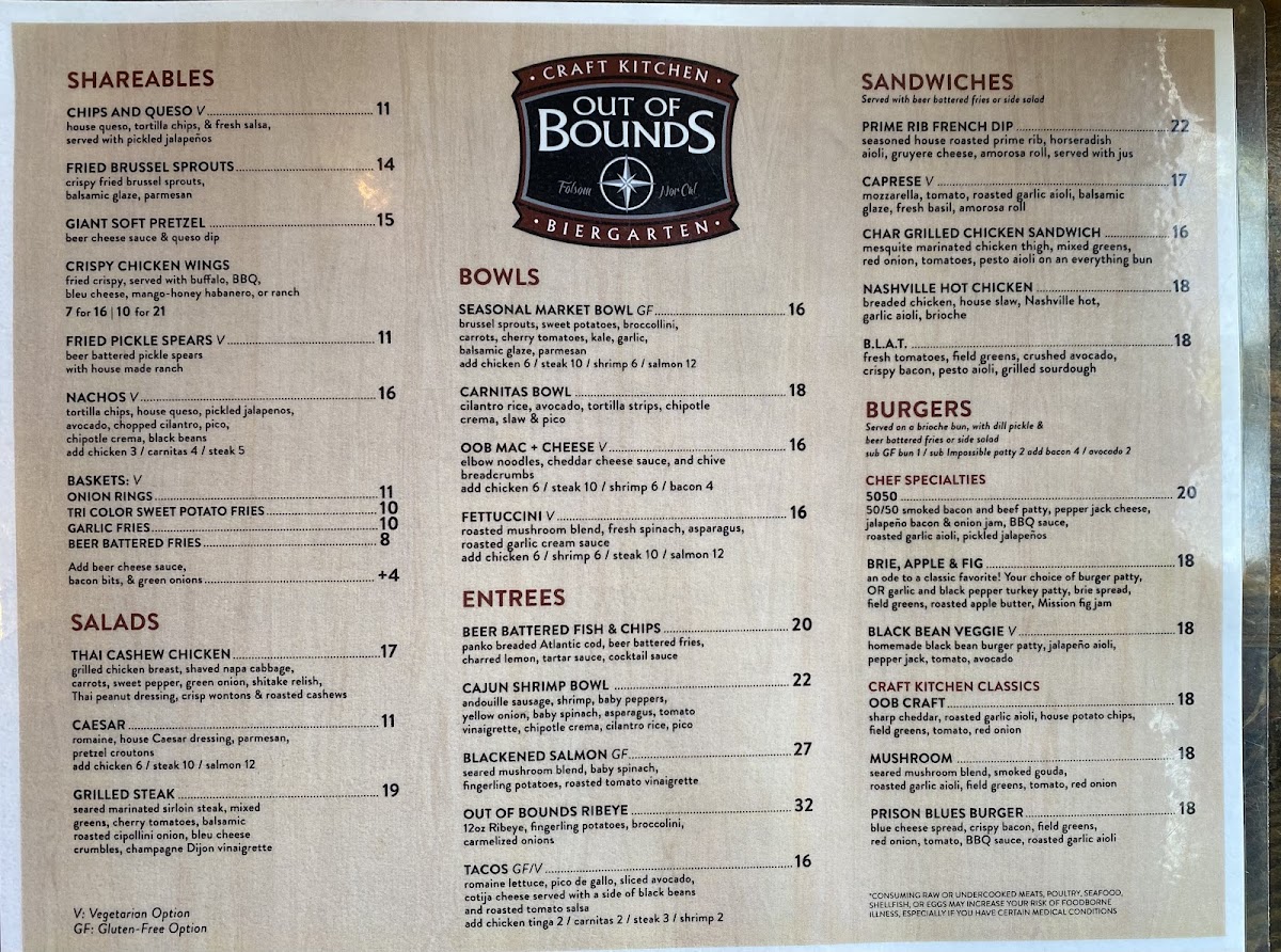 Join the Out of Bounds Craft Kitchen and Biergarten Newsletter